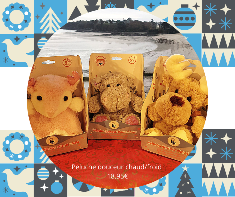 Nous proposons 3 peluches douceur bouillottes renfermant une poche contenant des perles de silicone qui peuvent être mise au micro ondes ou au congélateur en fonction des besoins (maux de ventre, bobos, douleurs de croissance, réconfort …). Elles sont utilisables dès 6 mois. 18.95€